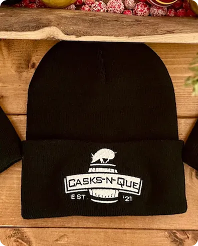 Our CasksnQue Beanie is designed to keep your head and ears warm! Made by Port and Company